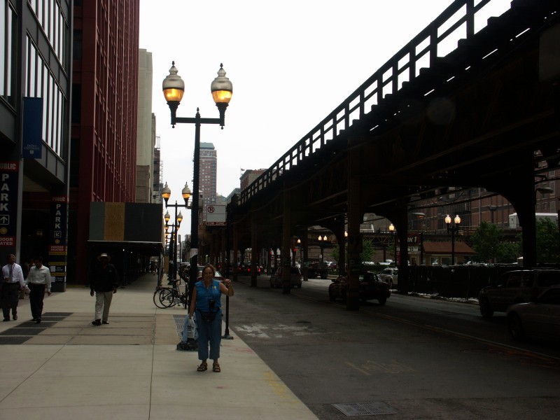 Dans une rue de Chicago: le tram n'encombre pas la chaussée!