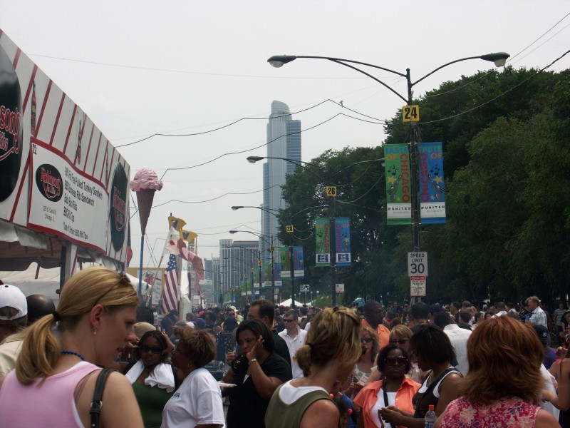 Bain de foule: la ville de Chicago, cosmopolite se prépare dèjà à l'Independance Day du 4 juillet, fête nationale américaine.