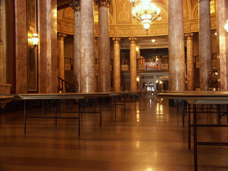 L'entrée du théâtre Rialto de Joliet en cours de préparation pour un mariage.