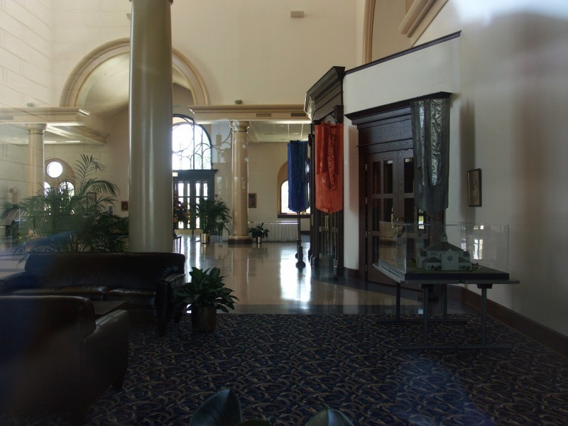 L'entrée est cossue et confortable. Mais l'église elle-même est fermée. Nous ne pouvons pas la visiter.