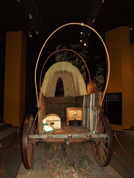 Un chariot du temps des pionniers dans le musée sous l'arche.