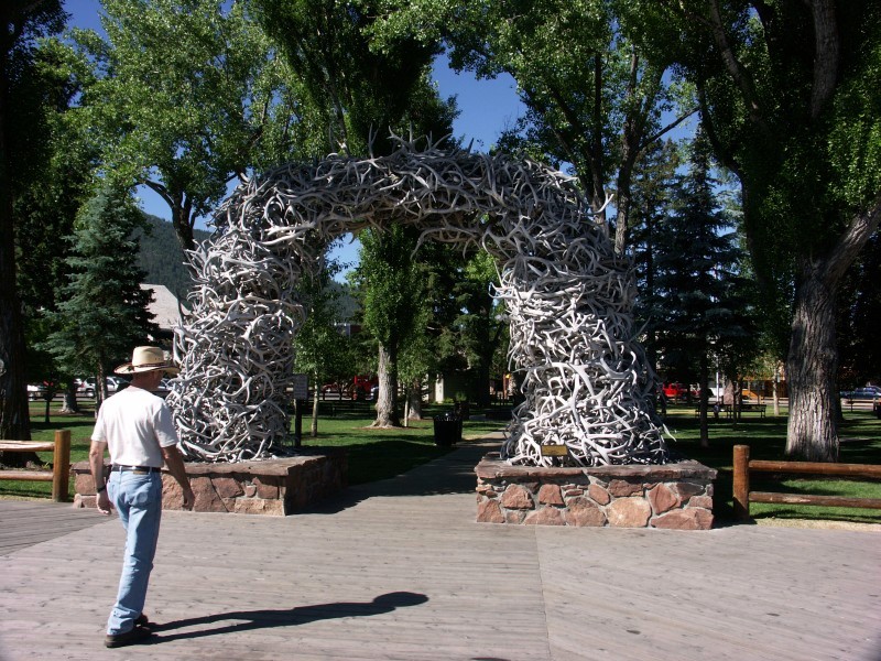 Arrêt à Jackson (Wyoming) pour admirer la ville qui a gardé son aspect western. Les entrée du parc sont décorées d'immenses arches faites de cornes de cerfs.