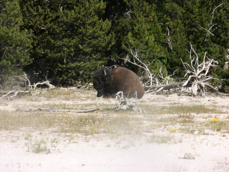 Les odeurs de soufre et la foule des touristes ne gêne absolument pas les bisons résidents de Yellowstone.