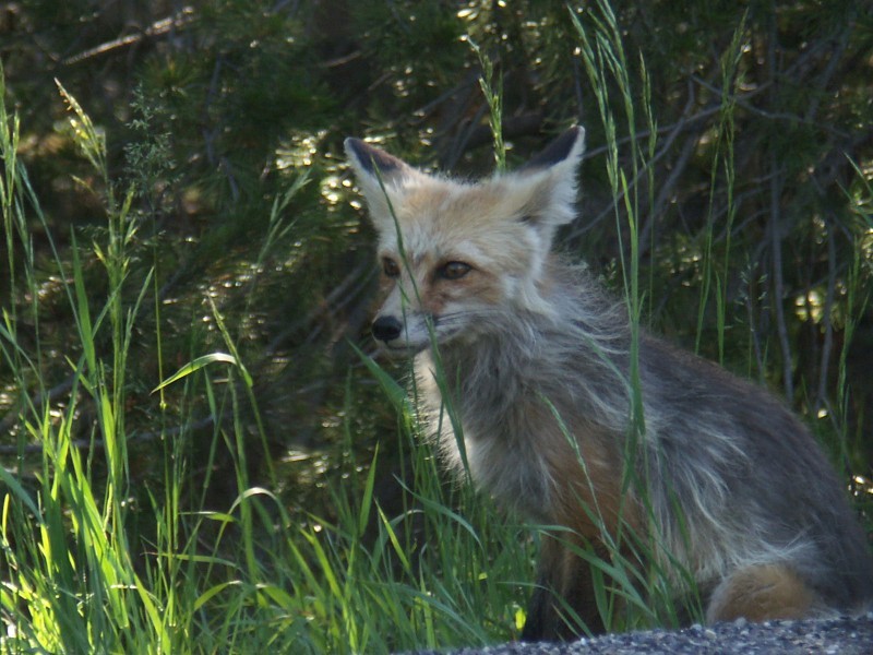 Les renards de Yellowstone surveillent la route et chassent en toute quiétude.