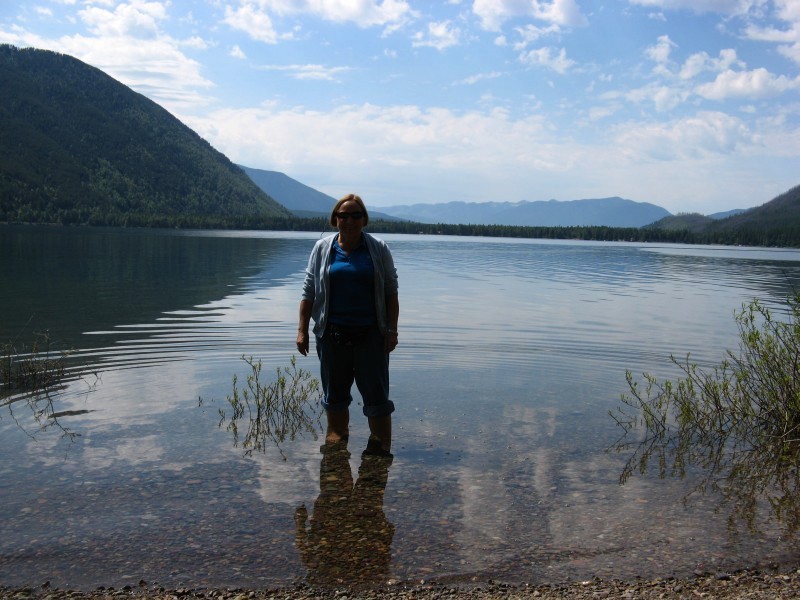A 11h, quand le soleil arrive, Rosine ne résiste pas au plaisir de mettre les pieds dans l'eau du lac Mc Donald.
