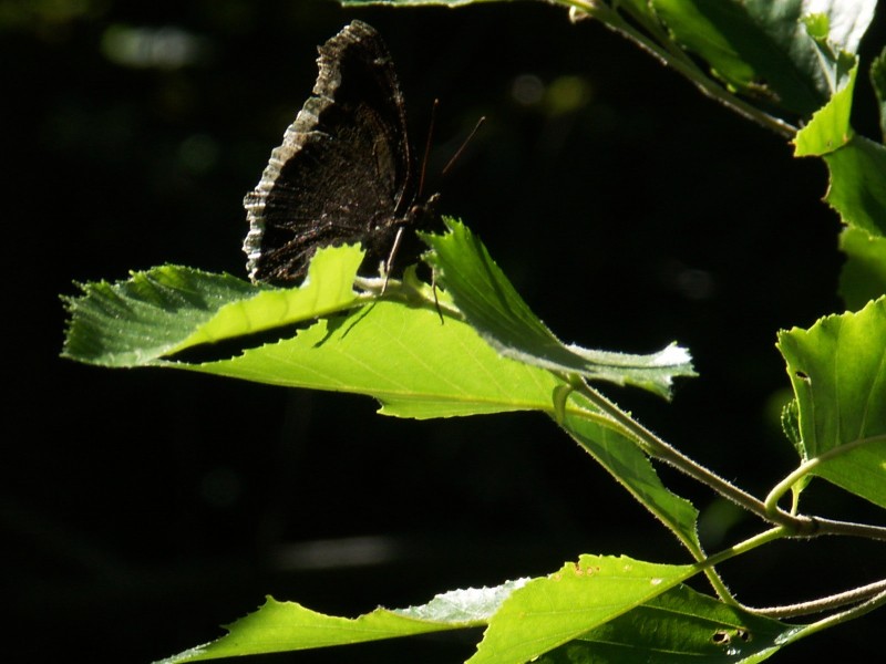 Un papillon vient rendre visite au coin repas dans le soleil du soir.