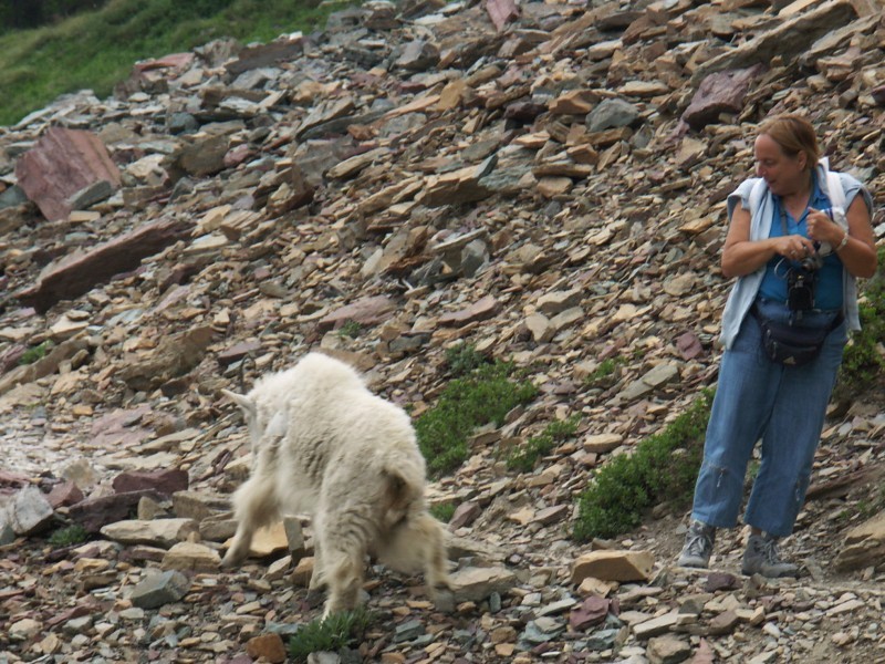 Les chèvres des montagnes (mountain goats) passent leur chemin même quand on occupe leur sentier préféré.