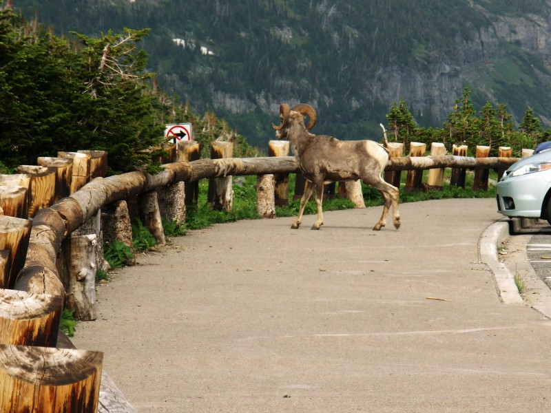 Un mouflon mâle s'attarde sur le parking.