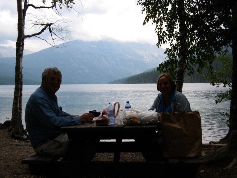Picnic in front of Kintla Lake after 46 miles driving on a non paved rought road.