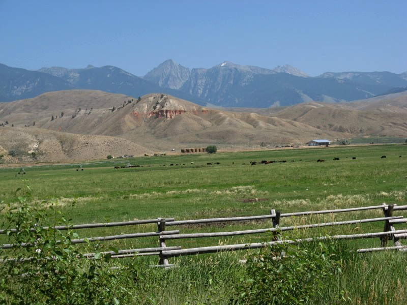 Between two mountains, road goes to the Lost Trail Pass. Lewis et Clark couldn't found it while it was not used by indiens. We cross over the pacific and atlantic watershed .
