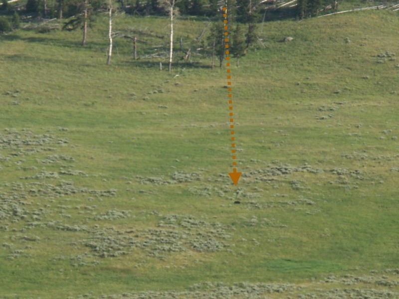 At last, we can see a bear! Yes: it is! We can see it with binoculars. He is busy, eating blueberries.