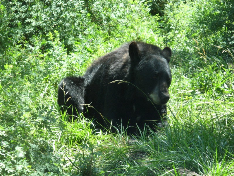 Placide, un ours solitaire nous regarde passer bien à l'abri derrière les vitres de notre voiture.